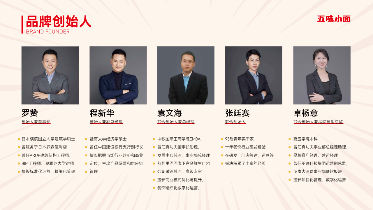 五味小面創(chuàng)立于2016年,2019年開(kāi)始公司化運(yùn)營(yíng),2020年開(kāi)始以每年2-3倍增速逆勢(shì)發(fā)展。2023年,五味小面迎來(lái)3.0版本,我們將品牌戰(zhàn)略聚焦在“重慶招牌”上,并將重慶特有的“鮮、香、麻、辣、爽”注入品牌核心價(jià)值。我們立志做重慶小面的行業(yè)領(lǐng)導(dǎo)者,目前我們已在廣州、深圳、佛山、惠州、珠海、西安.上海等7個(gè)城市入駐,擁有70多家門(mén)店。